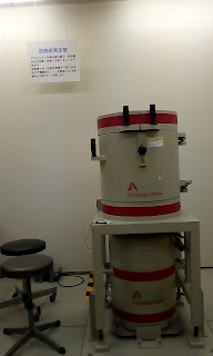 面談を終えて、ゲルマニウム半導体検出器を見学させてもらいました。とても精密な機器だそうで、維持費もかかるそうですが、いざ事故が起きた時には、自前でこの検出器を持っていることはデータの収集にとても大切、なぜなら事故時には検査機関に、多くの自治体からの検査の依頼が殺到し、即時のデータが得られないだろうから、とのことでした。